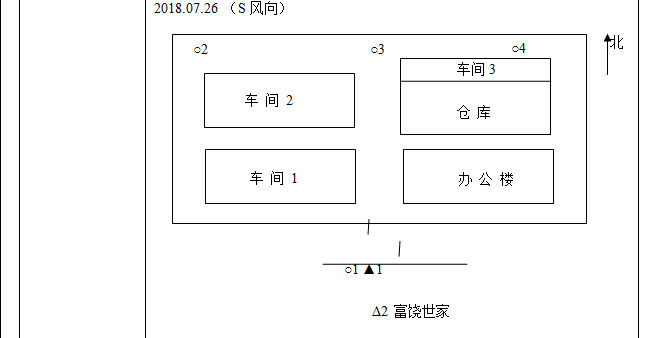 監(jiān)控點(diǎn)的布設(shè)、樣品的采集、監(jiān)測(cè)結(jié)果的計(jì)算,嚴(yán)格按照《固定污染源排氣中顆粒物測(cè)定與氣態(tài)污染物采樣方法》(GB/T 16157-1996)和《固定污染源廢氣監(jiān)測(cè)技術(shù)規(guī)范》(HJ/T 397-2007)的技術(shù)要求進(jìn)行。 2. 無組織污染源監(jiān)測(cè) 2.1 監(jiān)測(cè)因子、點(diǎn)位和頻次 本項(xiàng)目無組織廢氣監(jiān)測(cè)因子為VOCs,監(jiān)測(cè)點(diǎn)位和頻次見表5-3,監(jiān)測(cè)布點(diǎn)圖見圖5-1。 表5-3 無組織廢氣監(jiān)測(cè)內(nèi)容